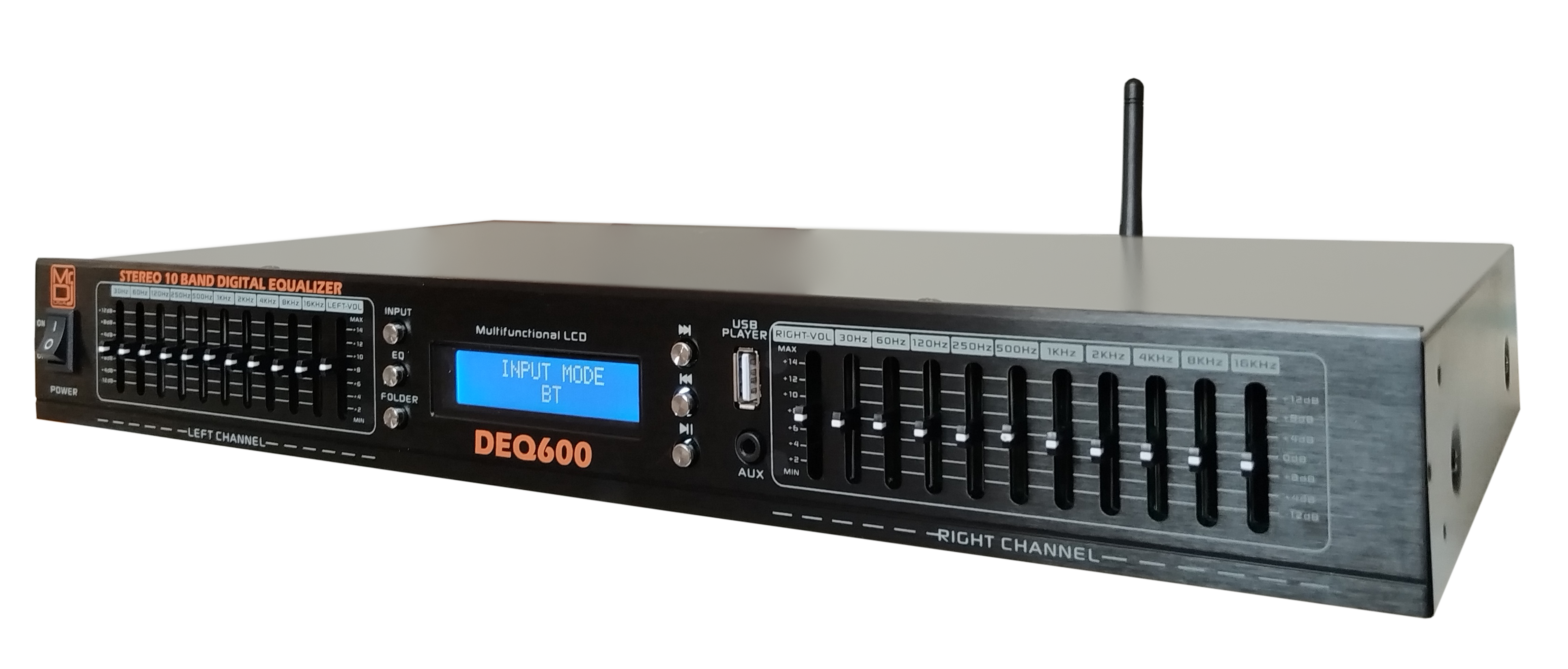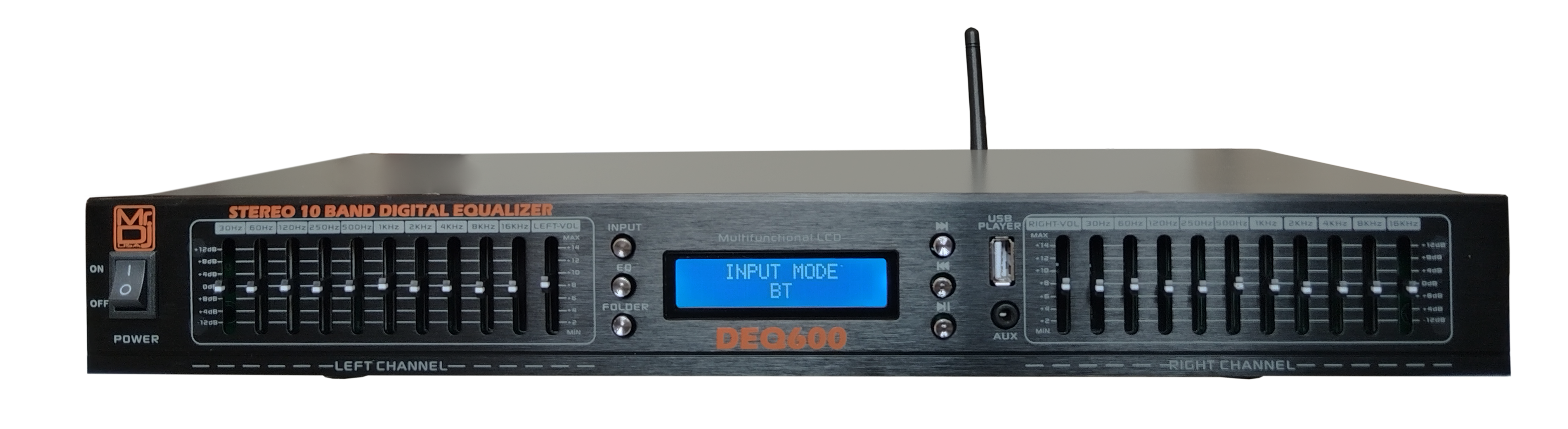 MR DJ DEQ600 19" Rack Mount features ten independently adjustable frequency bands, and MR DJ EQ600 gives you super-precise sonic control with your home stereo system. Far more sophisticated and powerful than your receiver's bass and treble controls, this graphic equalizer lets you fine-tune audio signals to suit your musical taste and also features a Bluetooth display. It doesn't just look cool — seeing the music's frequency content can also help you make suitable sound adjustments.
