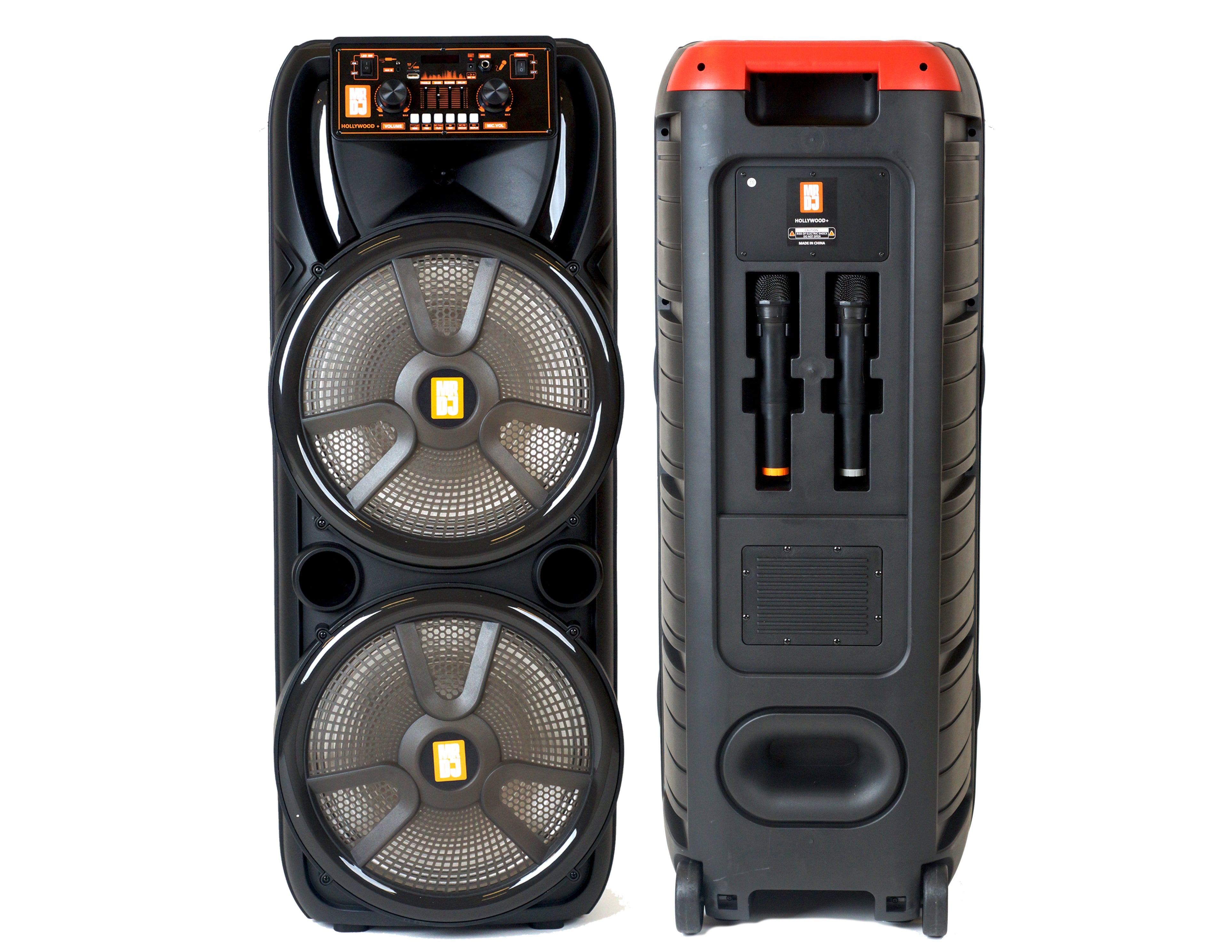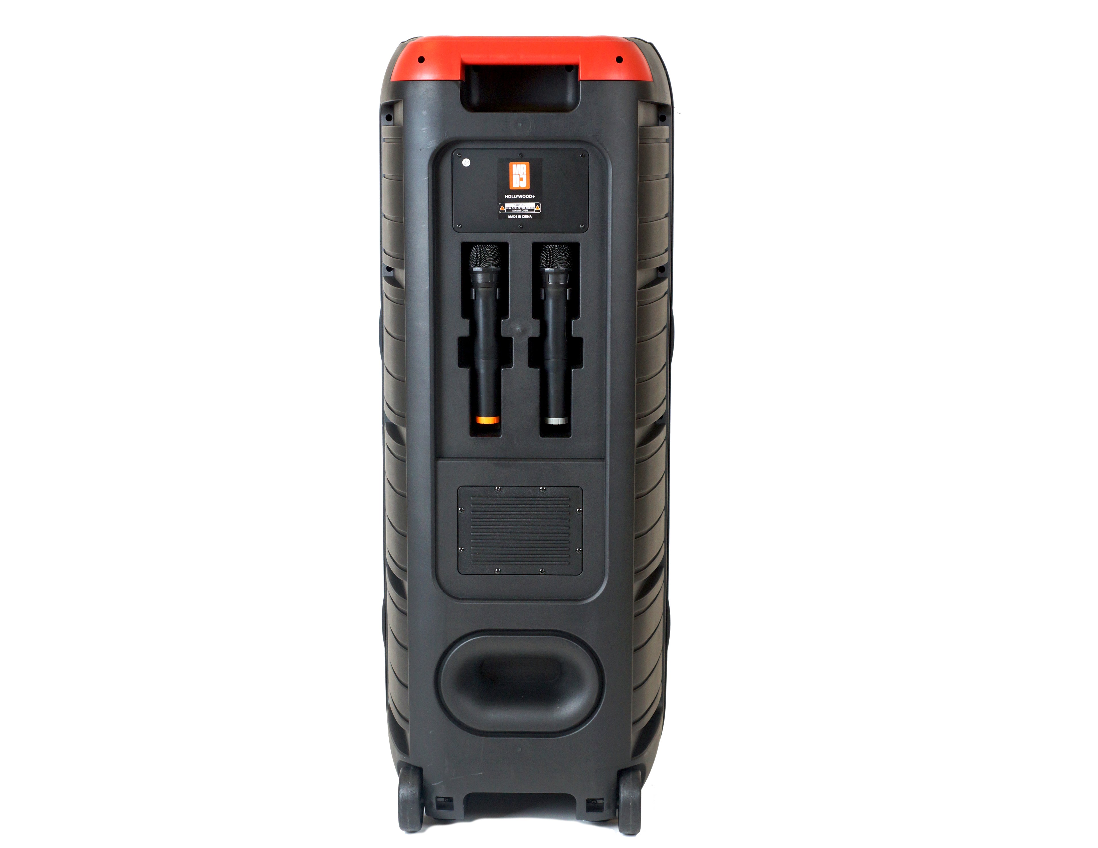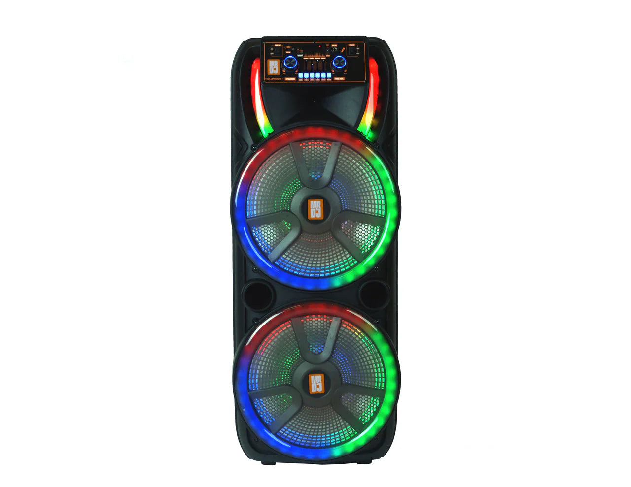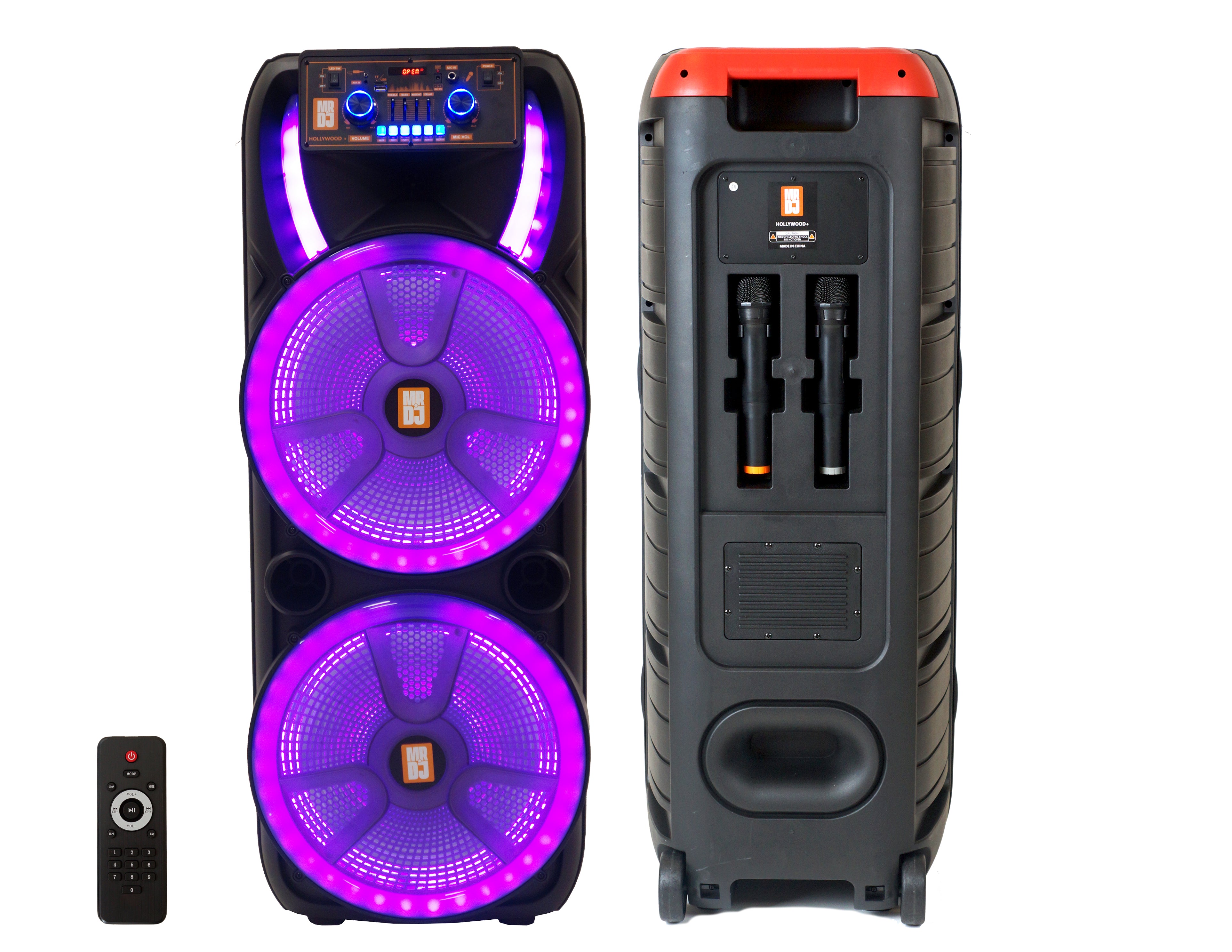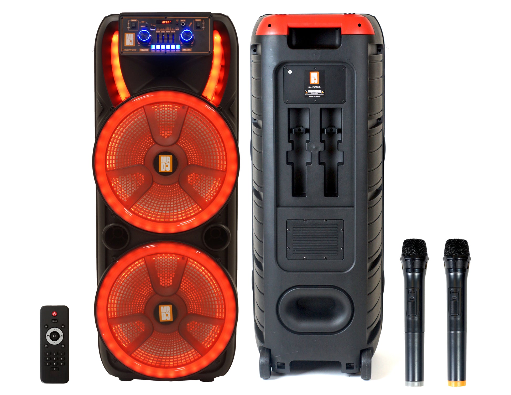 MR DJ HOLLYWOOD+ Dual 15" Rechargeable Portable Bluetooth Karaoke Speaker Party Flame Lights with 2 Wireless Microphone TWS USB FM Radio