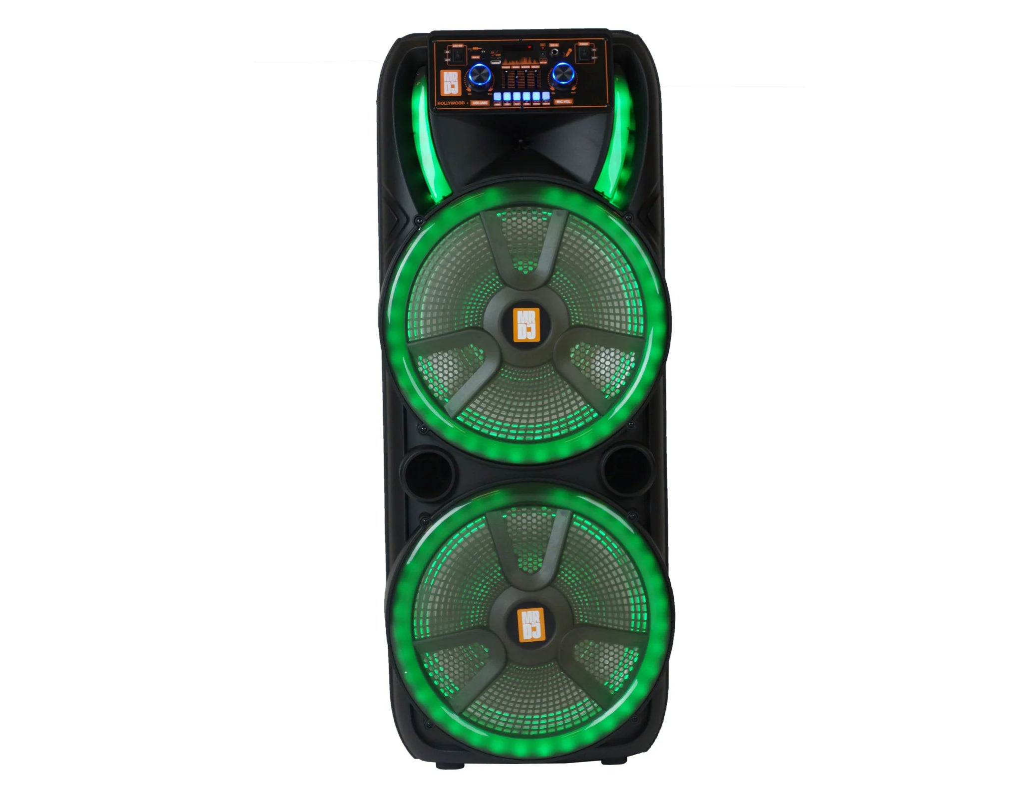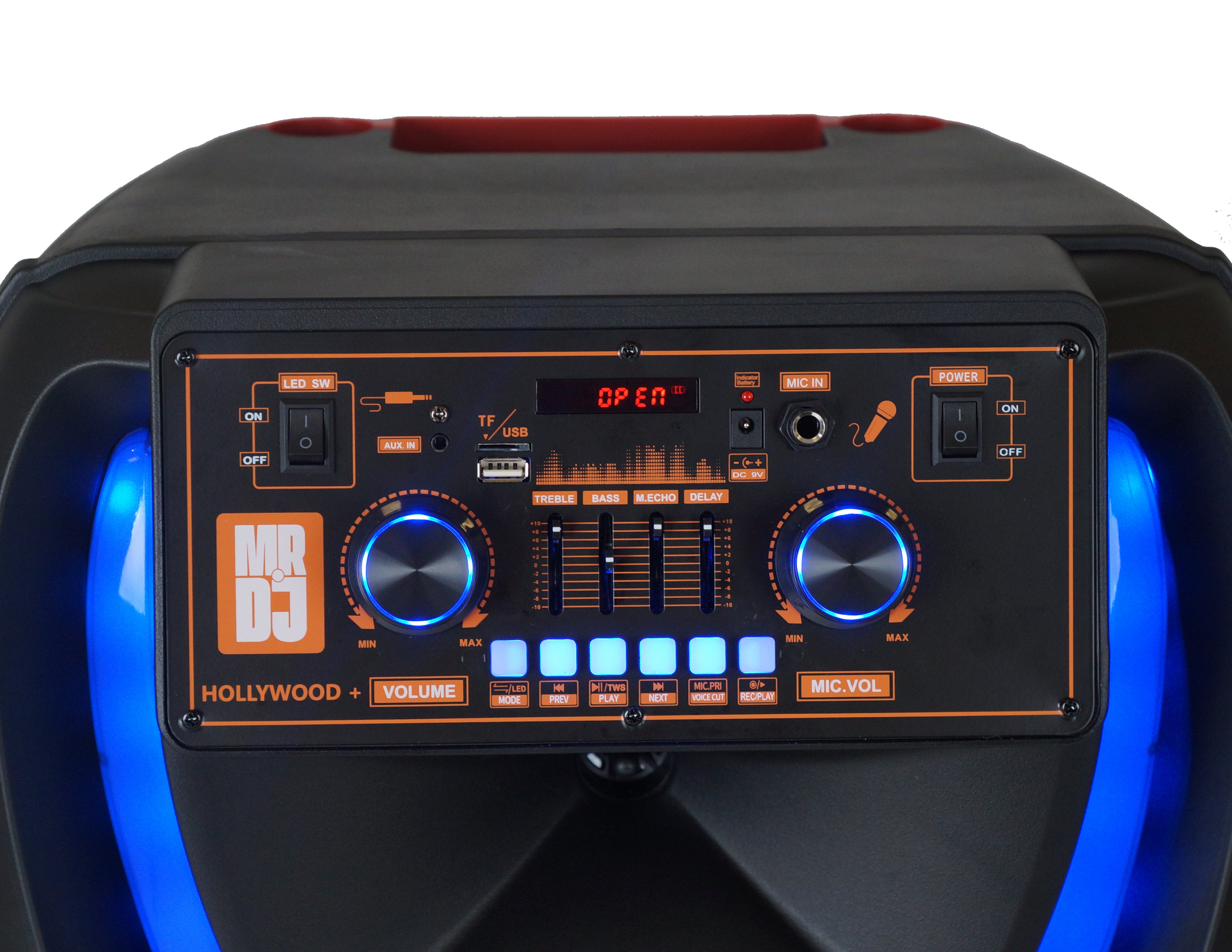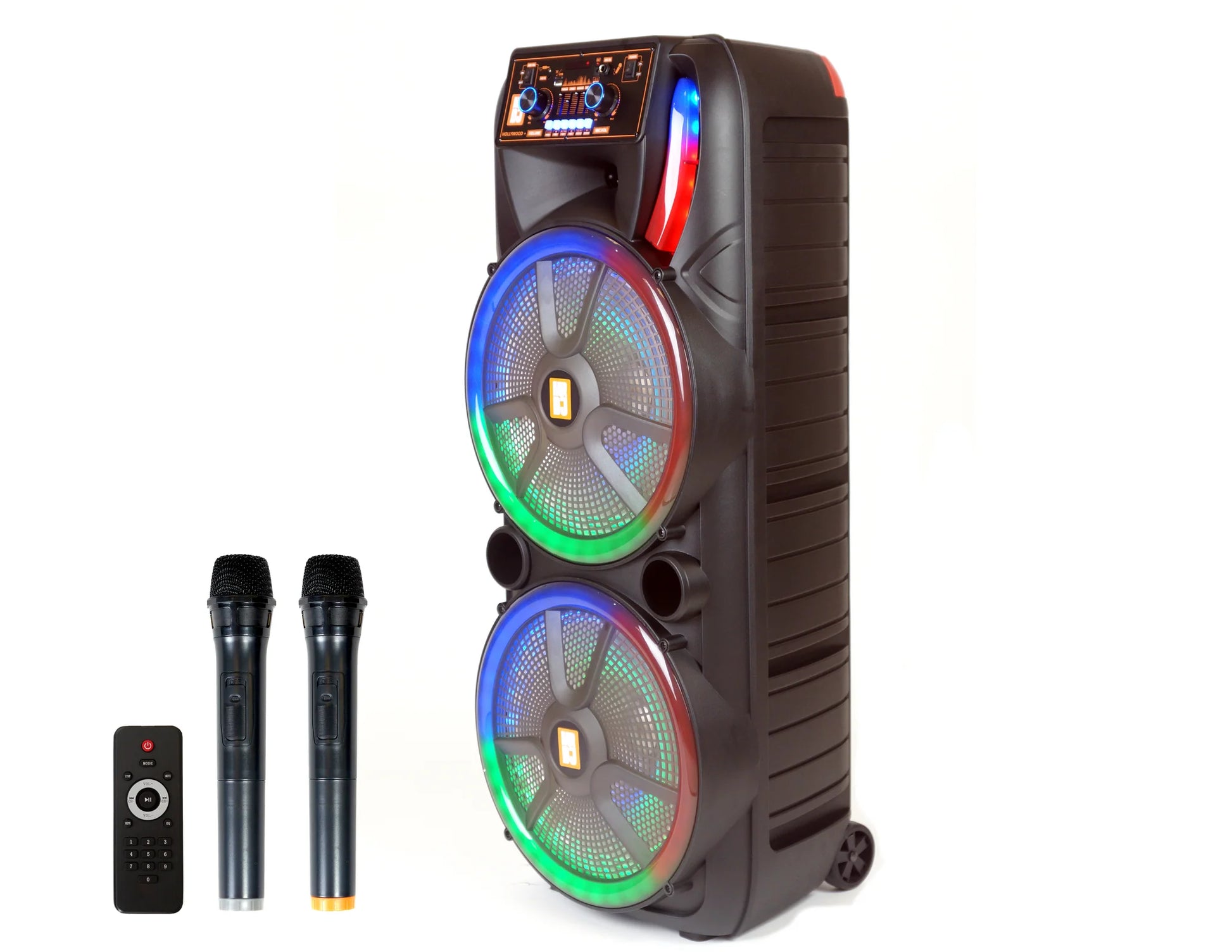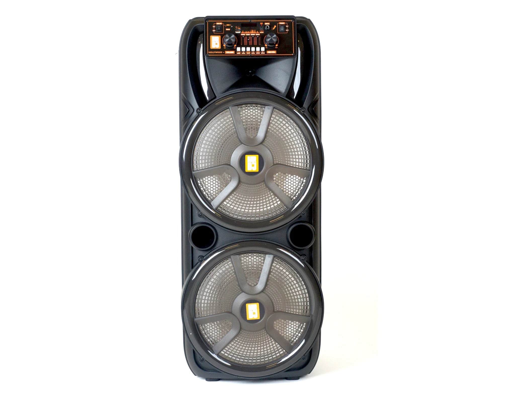 MR DJ HOLLYWOOD+ Dual 15" Rechargeable Portable Bluetooth Karaoke Speaker Party Flame Lights with 2 Wireless Microphone TWS USB FM Radio