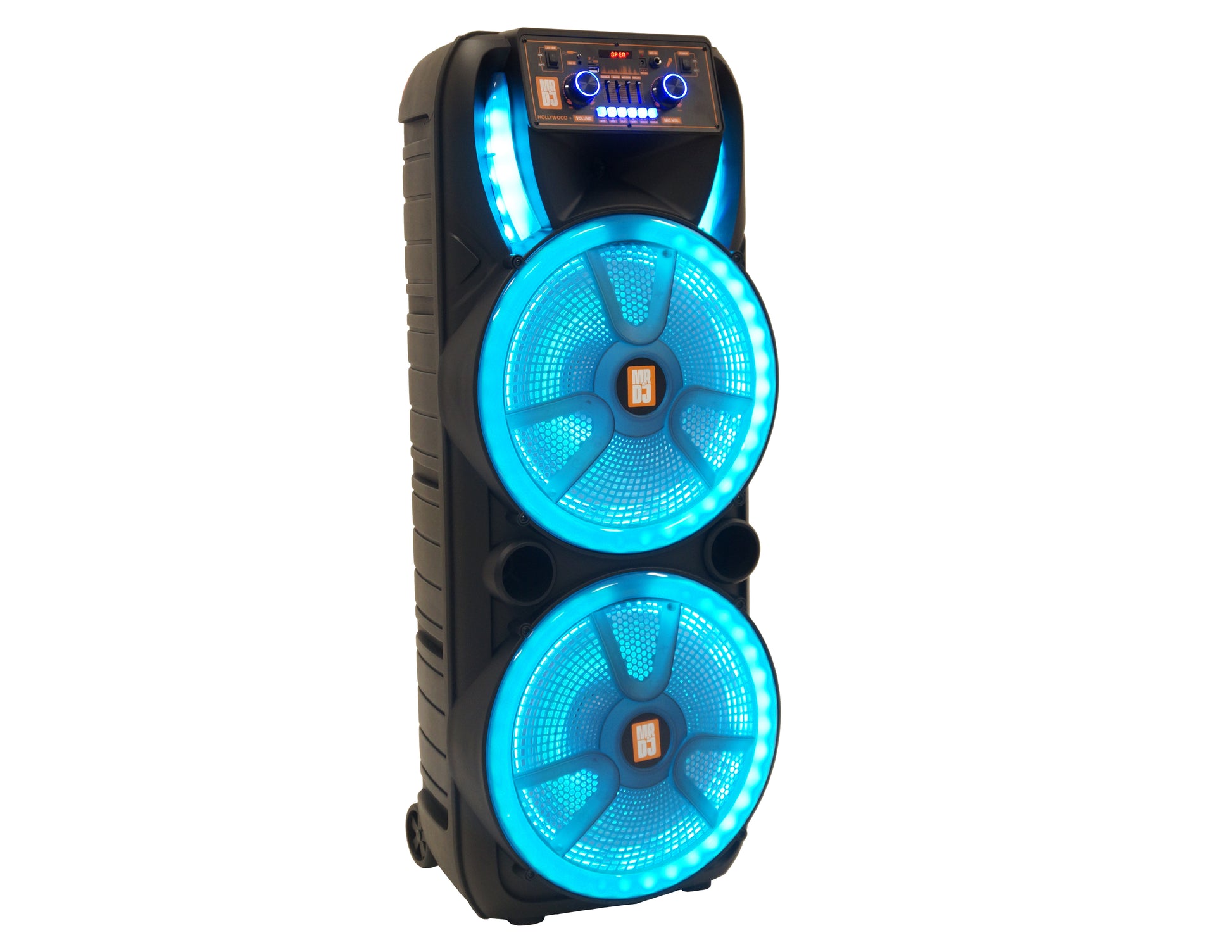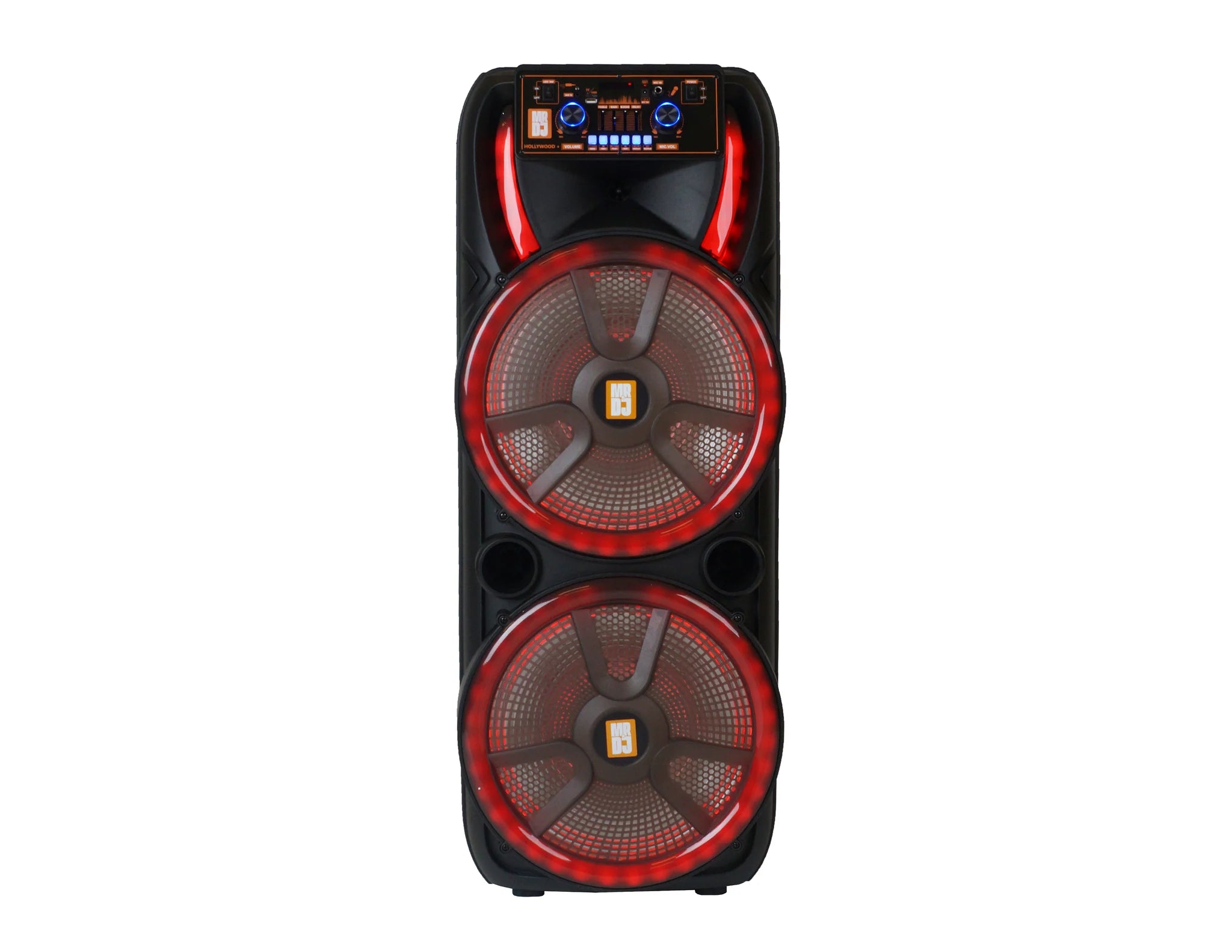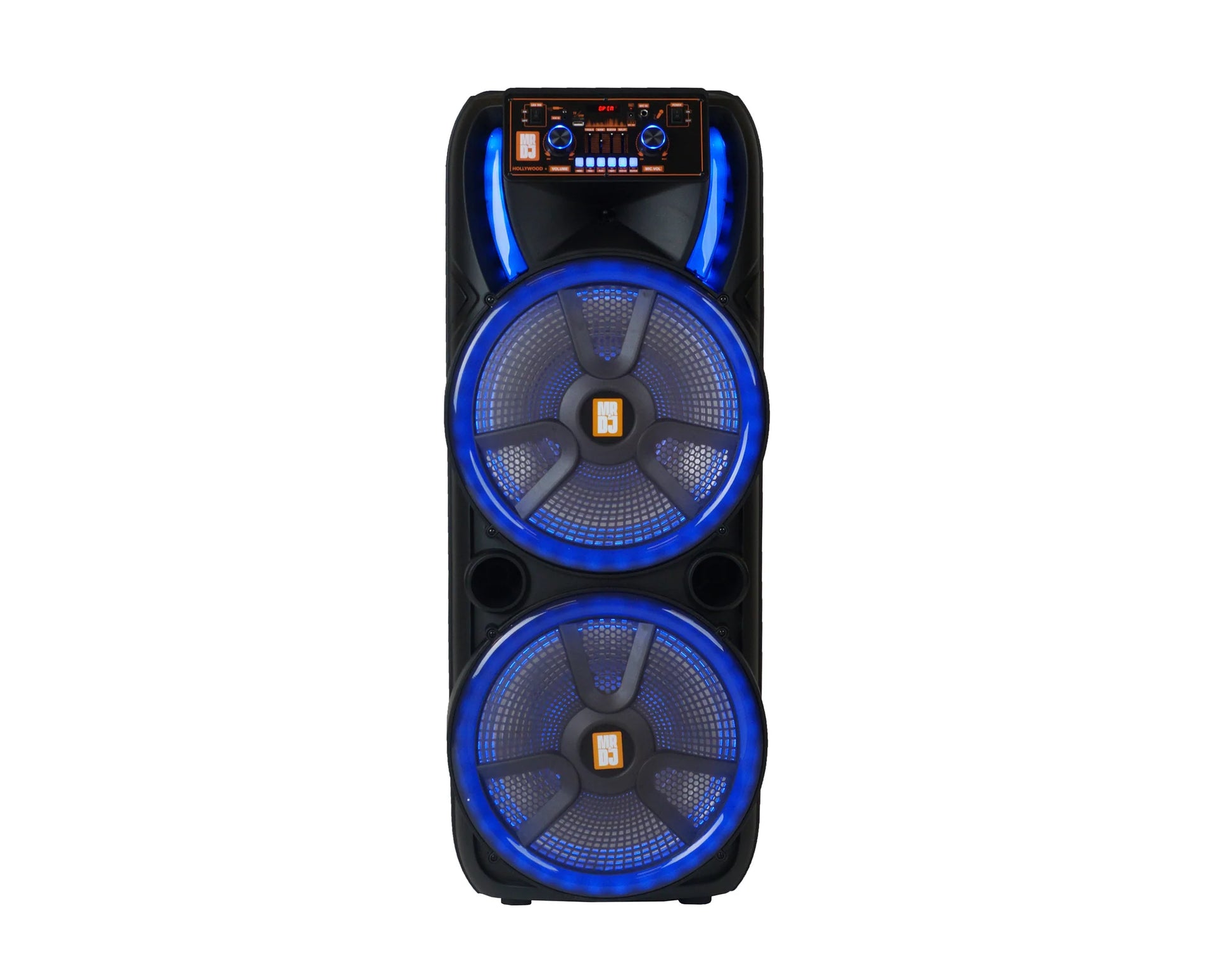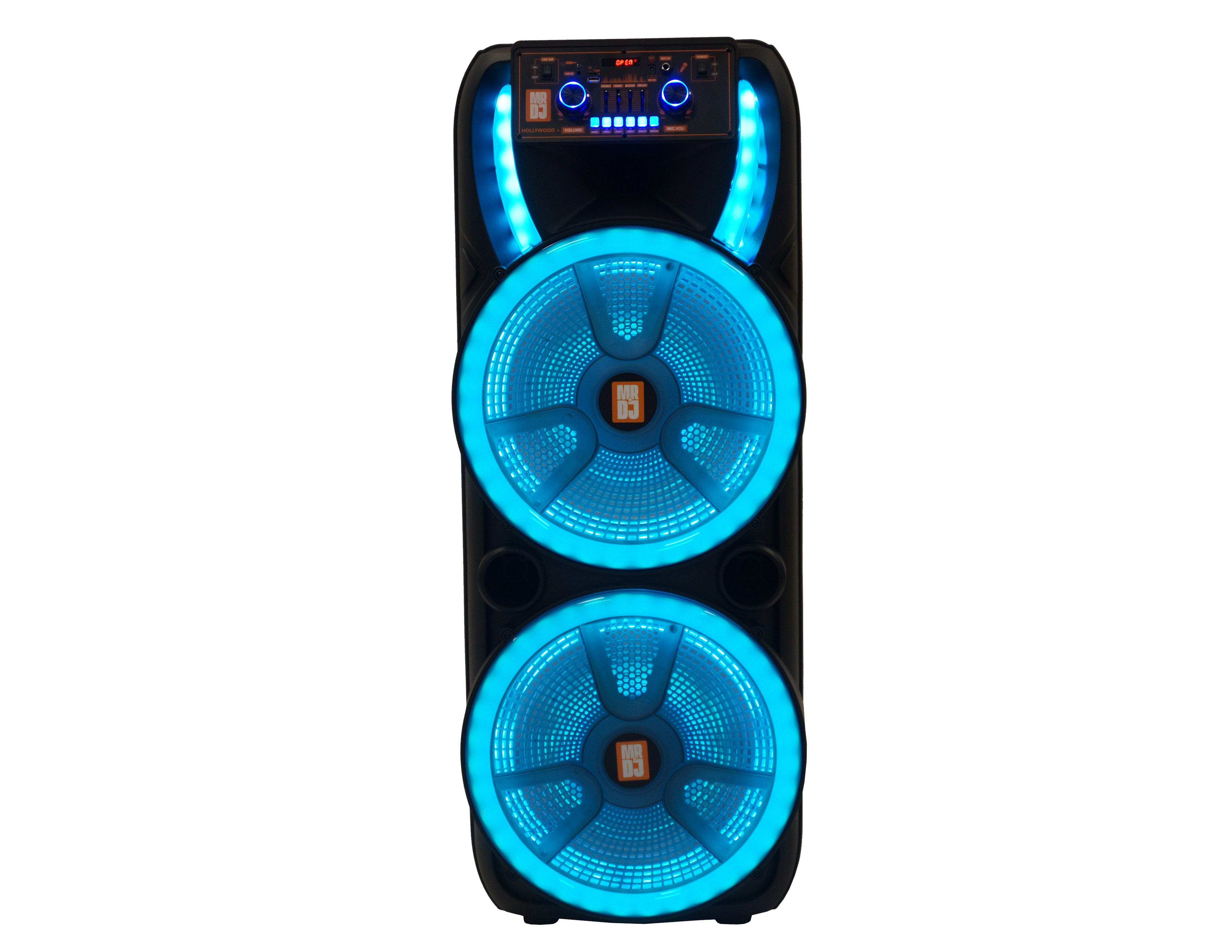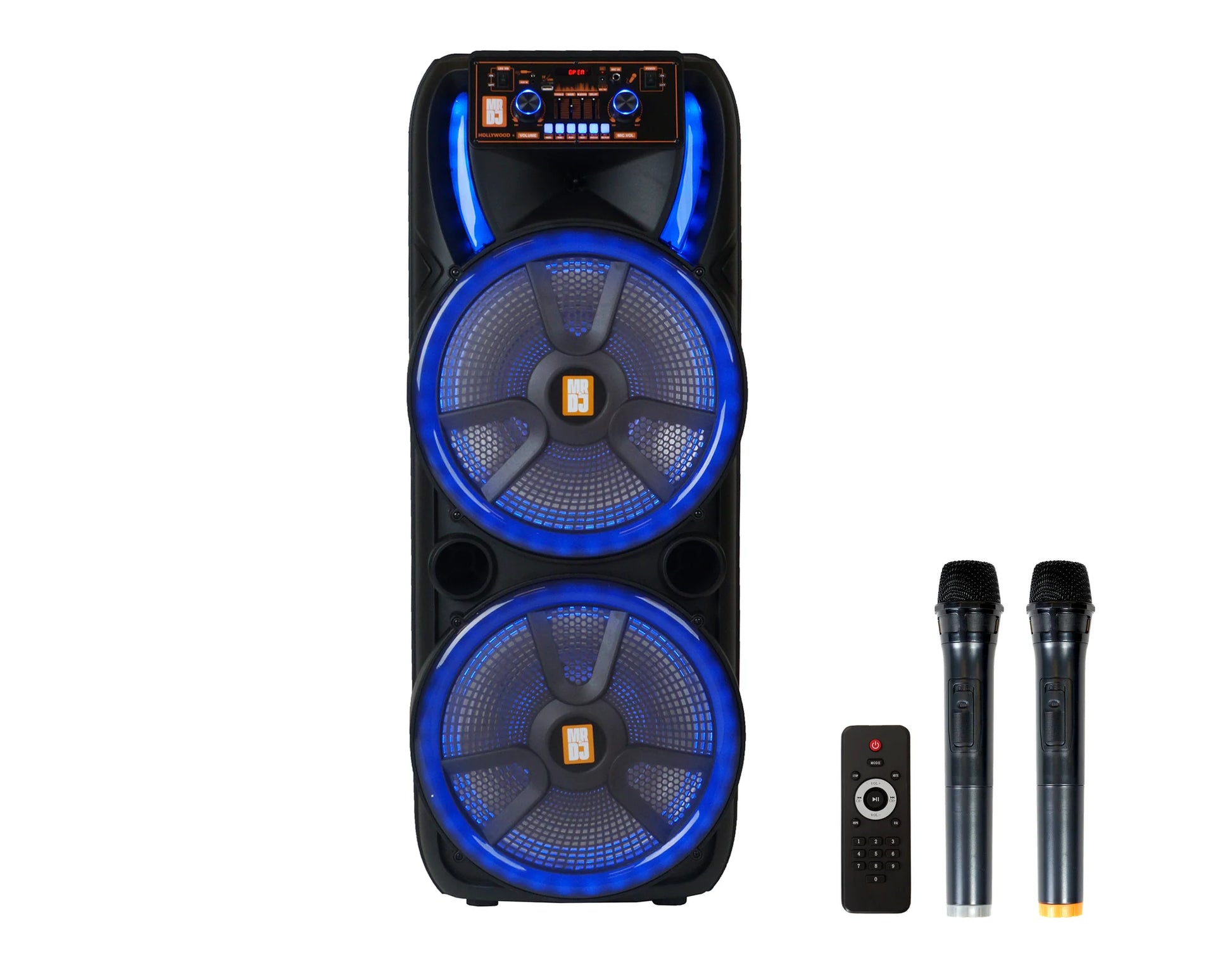 MR DJ HOLLYWOOD+ Dual 15" Rechargeable Portable Bluetooth Karaoke Speaker Party Flame Lights with 2 Wireless Microphone TWS USB FM Radio