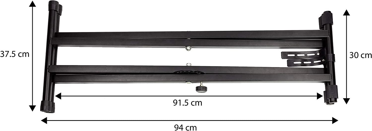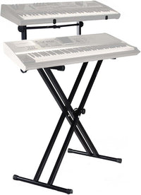 MR DJ USA KS650 2 Tier Doubled Adjustable Metal Music Keyboard Electronic Piano Dual Tube X Stand Standard Rack with Locking Straps & Quick Release Mechanism