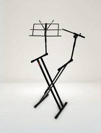 The MR DJ KS700 Dual-Tier X-Style Keyboard Stand – With Integrated Microphone Boom, Gooseneck, and Music Note Shelf for DJs, Performers & Musicians