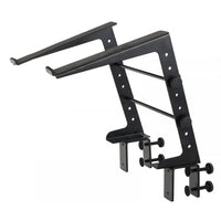 - EASY TO SET UP: This mobile DJ laptop stand comes with unique table mounting clamps that allow you to easily mount it on any table or platform for long-term use or clamp it down and take it to the next venue. Extremely sturdy and long-lasting, this computer stand will securely hold your laptop or other equipment (up to 50 pounds) and withstand frequent use.