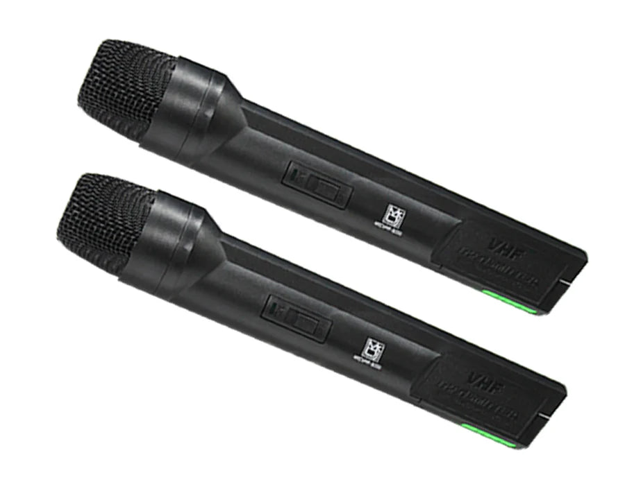 MR DJ Pro 2 Channel Wireless VHF Microphone System with Diversity 2 CH Handheld Mics Set For DJ Stage, Church, Karaoke, KTV, Family Wedding, Party, Night Club, School Play, Speech, Outdoor, Indoor. This machine utilizes computer-integrated audio chip technology for line processing, providing strong anti-interference capabilities. It can be applied to various complex environments, offering a wide range of uses. Additionally, it incorporates ultrahigh-frequency radio transmission technology, enabling an average working distance of up to 240 Feet (80 meters). This machine is suitable for meetings, family gatherings, small performances, speeches, and other events. Two pieces of handheld headsets with high-definition, backlit displays can display the current working channel. There are channel receivers, so four microphones can be used simultaneously.