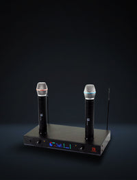Dual Rechargeable Wireless Microphone System – Includes two handheld mics and a VHF digital receiver
