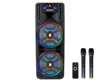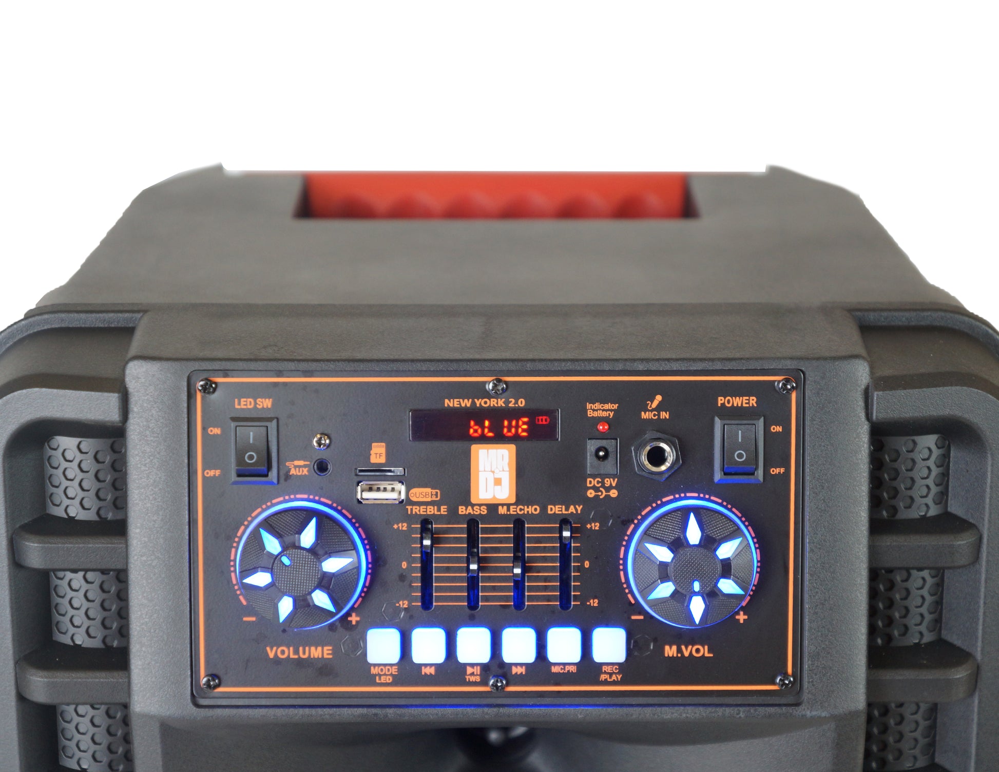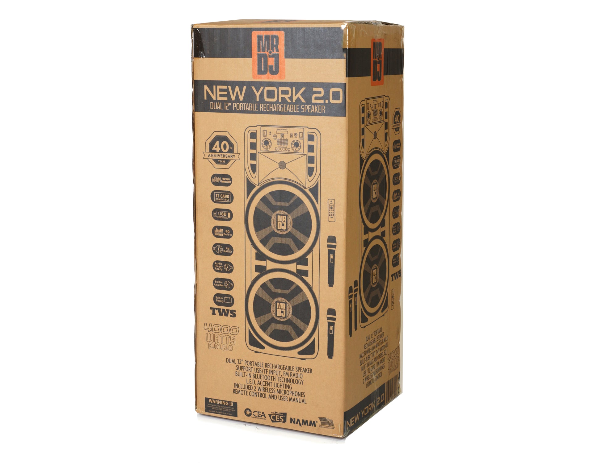 MR DJ USA NEWYORK 2.0 Dual 12" Rechargeable Portable Bluetooth Karaoke Speaker Party Flame Lights with 2 Wireless Microphone TWS USB FM Radio