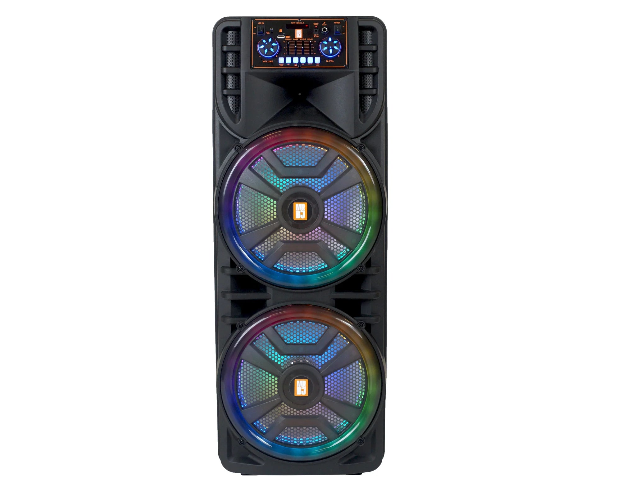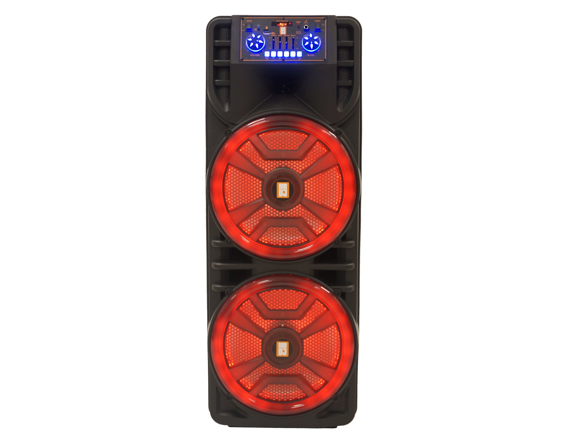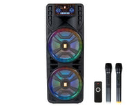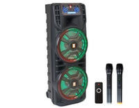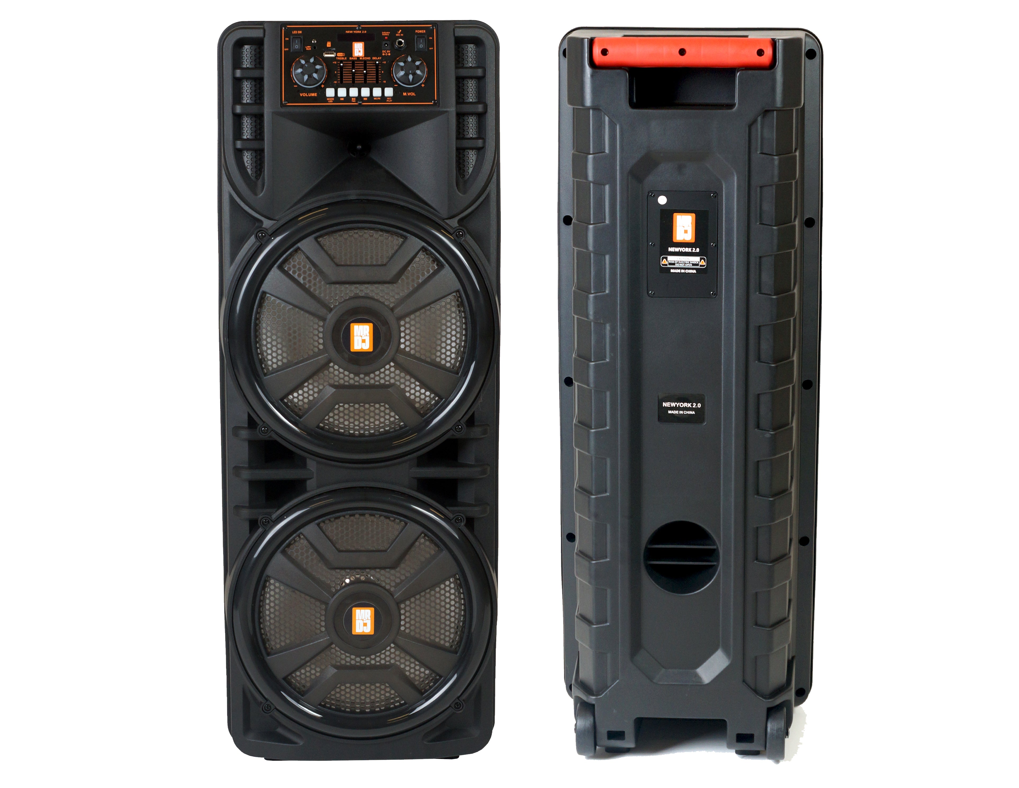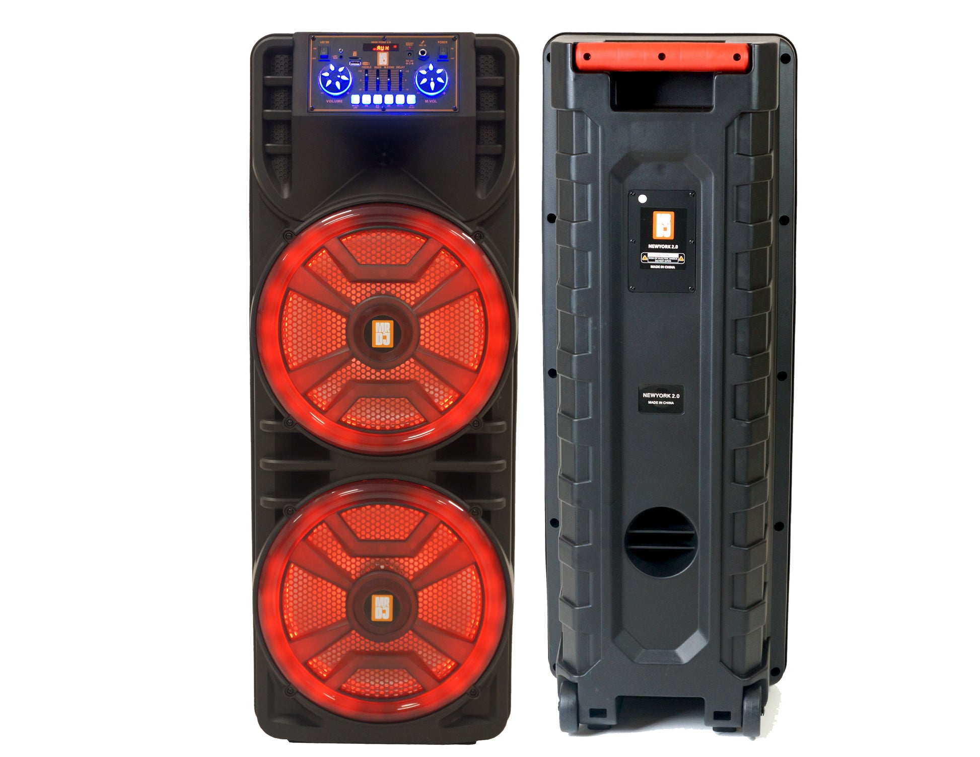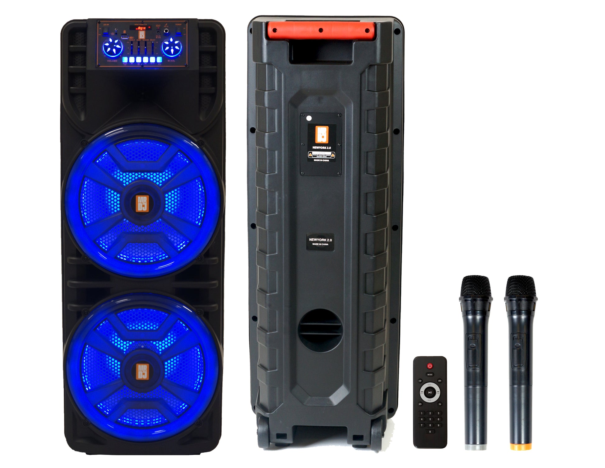 MR DJ NEWYORK 2.0 Dual 12" Rechargeable Portable Bluetooth Karaoke Speaker Party Flame Lights 2 Wireless Microphone, TWS USB FM Radio