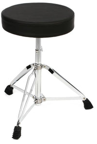 The MR DJ ST500 drum throne has the comfort, stability, and resilience that today's gigging drummer demands. Its round, cushioned seat is stuffed with high-density foam to support a drummer's frame and finished in a flame-retardant faux leather cover. Directly underneath is a height-adjustable, pin-style steel shaft with a wiggle-free nylon insert that eliminates play once set. Solid steel double-braced legs with non-slip rubber feet support the seat and shaft for rock-solid performance.