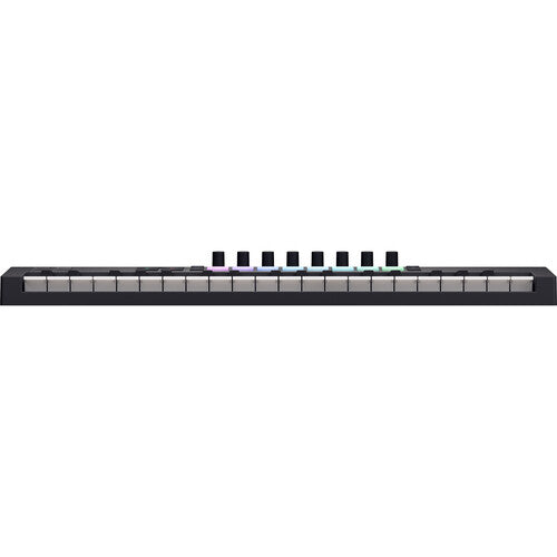 Launchkey Mini 37 is a powerful DAW controller with three octaves of synth-style mini-keys, eight encoders, and 16 velocity-sensitive pads for playing drums and instruments and launching clips. Creative Chord and Scale modes are built right in and work with the OLED display to make staying in key effortless.